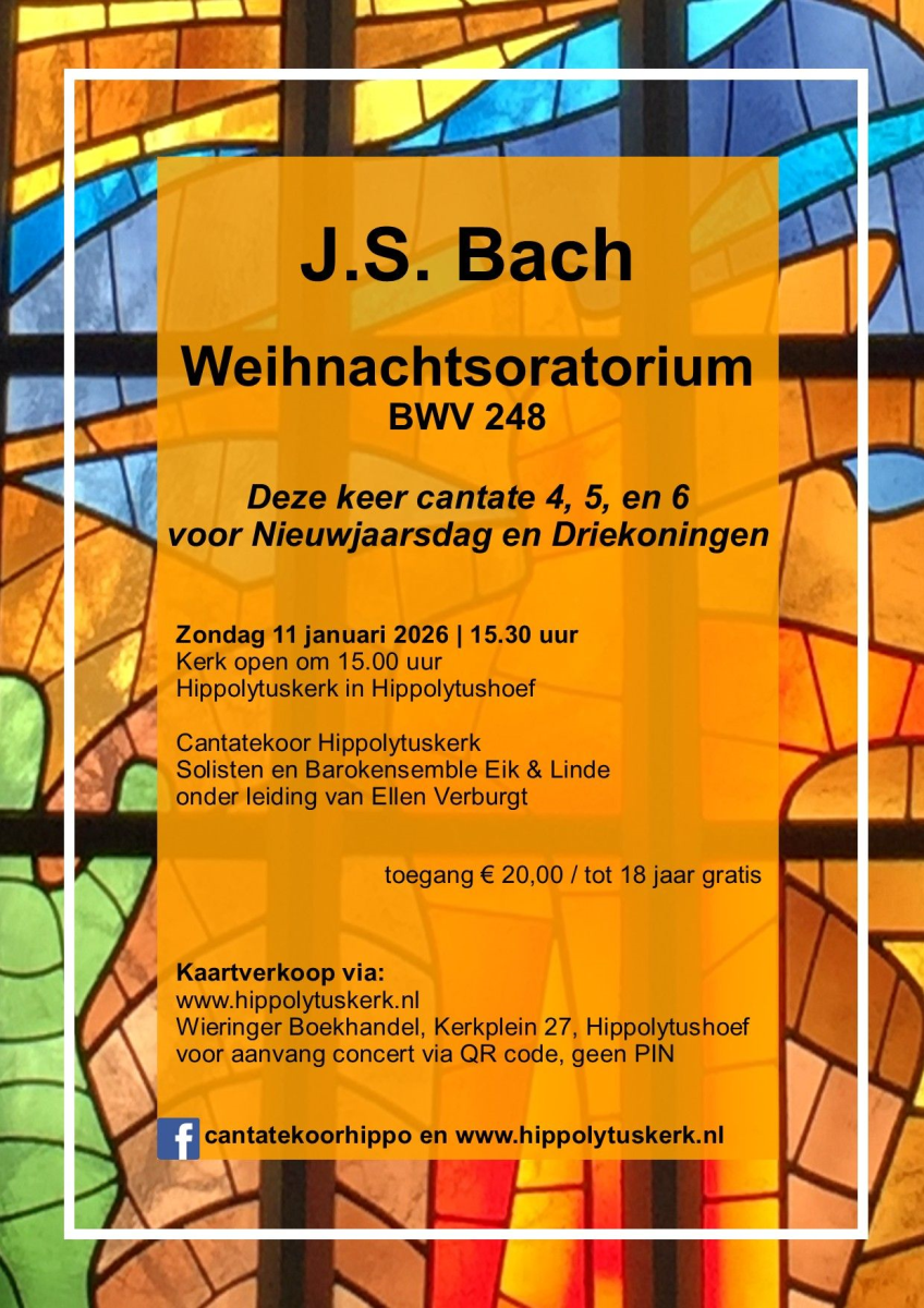 Deze indrukwekkende cantates horen bij de periode van Nieuwjaarsdag tot Driekoningen. Kaarten zijn nu te koop! Hippolytuskerk.nl/cantatekoor